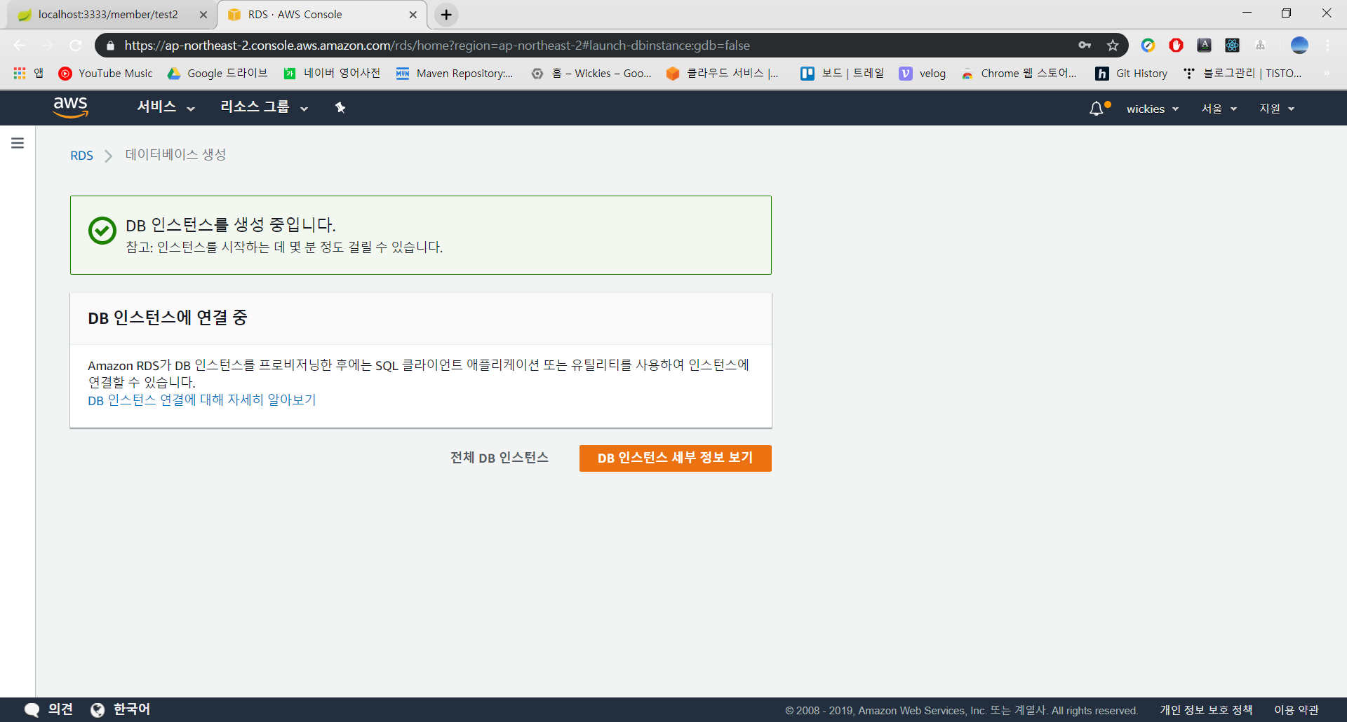 - DB 인스턴스가 생성 중이라는 알림이 나오면 성공입니다.